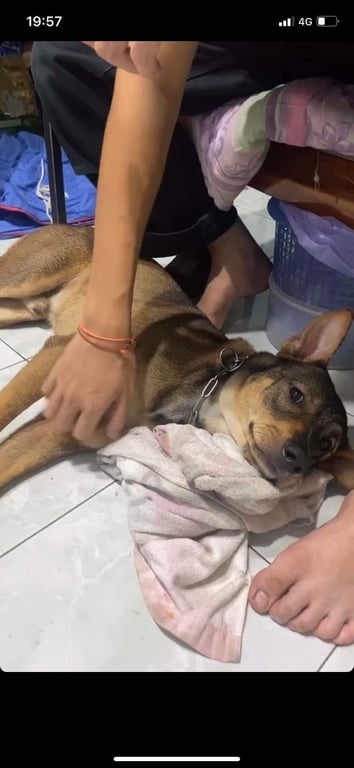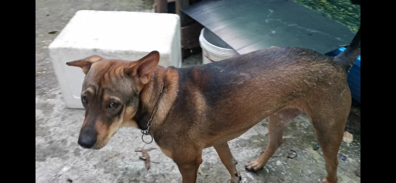 สี: สีน้ำตาล ตามสันหลังสีดำ หน้าอกสีขาว หลังเท้าหน้าขว