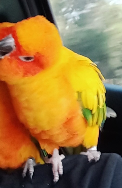รอยตำหนิ: ปากและเล็บเท้าจะมีความเทานิดๆไม่ดำสนิทเหมือนซันคอนัวร์ตัวอื่น(หากถ่ายรูปอาจจะไม่ชัด อาจจะเห็นเป็นสีดำแทน) ขาจะขาวกว่าปกติและมีห่วงขาสีเงินที่ขาขวา มีชื่อและเบอร์โทร(มีตังใส่ห่วงขาของพี่ชาย ชื่อที่ห่วง