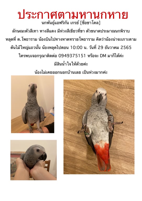 สี: ตัวเทา หางแดง