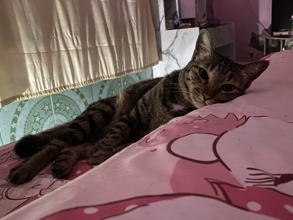 รอยตำหนิ: หางกวัก แต่ไม่ขอดใส่ปลอกคอสีม่วง กระดิ่งใหญ่ๆ