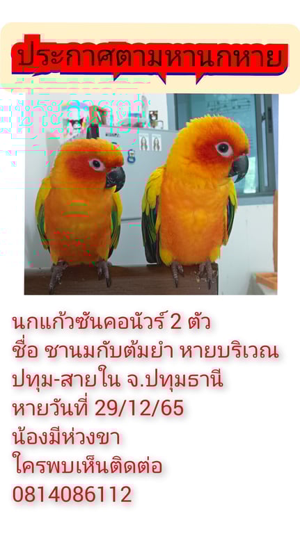 รอยตำหนิ: ตัวสีเหลือง หางสีเขียว