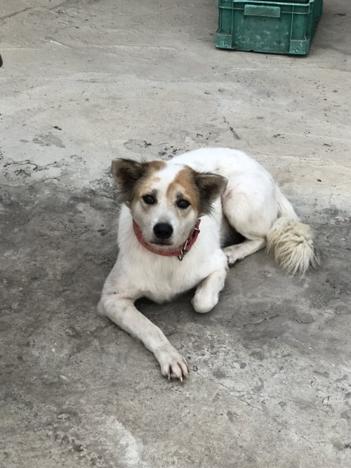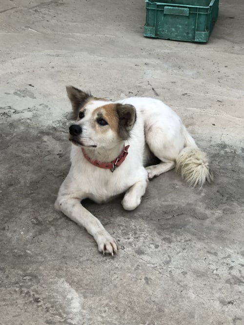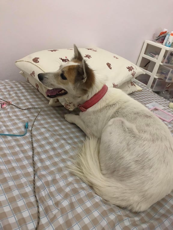 สี: ตัวสีขาว ปอกคอแดง จี้สีน้ำเงิน สลักชื่อ