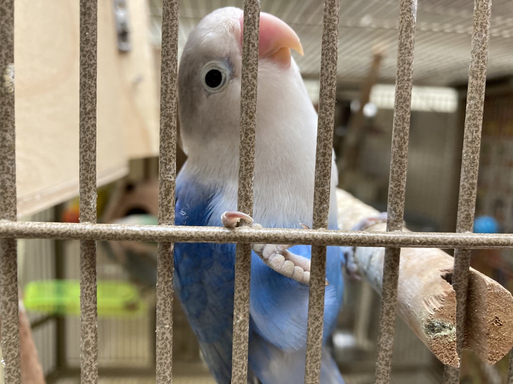 สี: หัวขาว ตัวฟ้าน้ำเงิน ปากเหลืองอมชมพู
