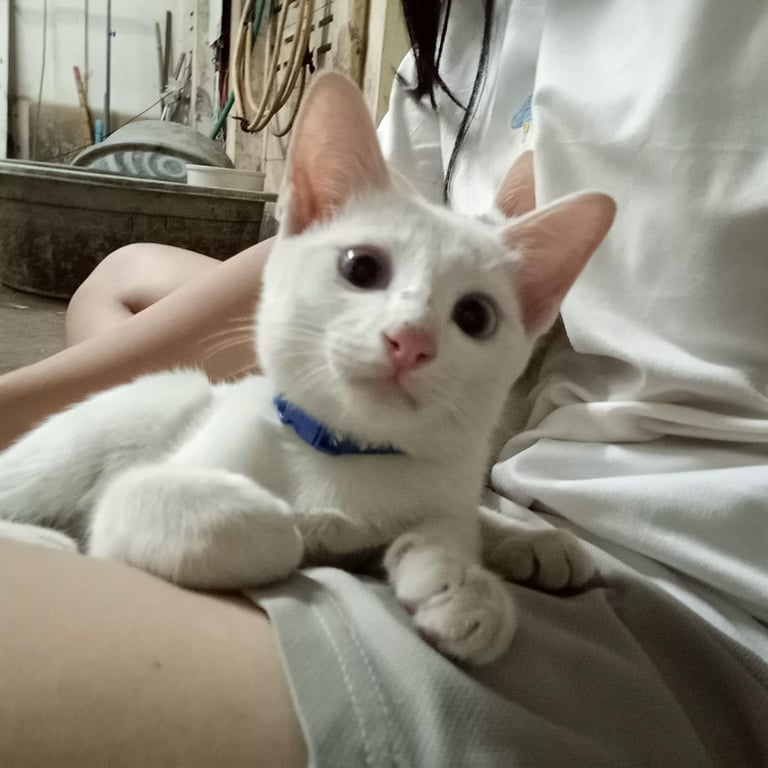 รอยตำหนิ: น้องใส่ปลอกคอสีแดง เป็นแมวขาวตาฟ้า หางน้องถ้าจับดูจะรู้ว่าหักที่ปลายนิดนึงค่ะ อายุ 4 เดือนน้องหายในนย.ค่ะ หากพบโทร 0649239468