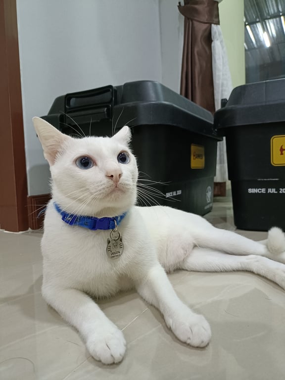 สี: สีขาวตาสีฟ้า