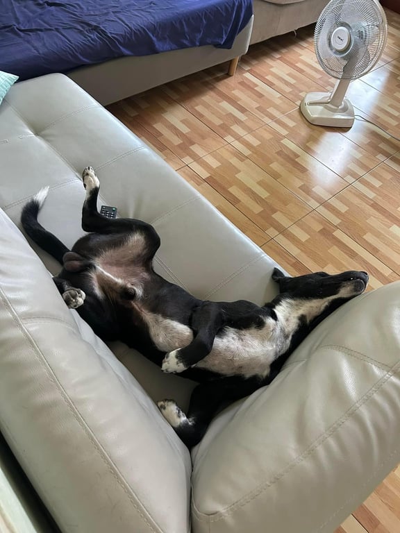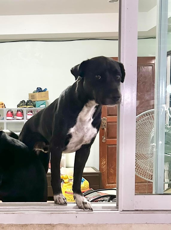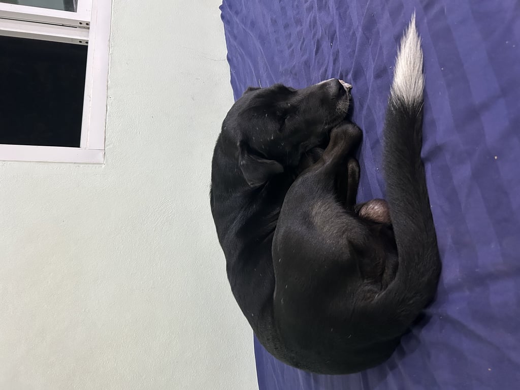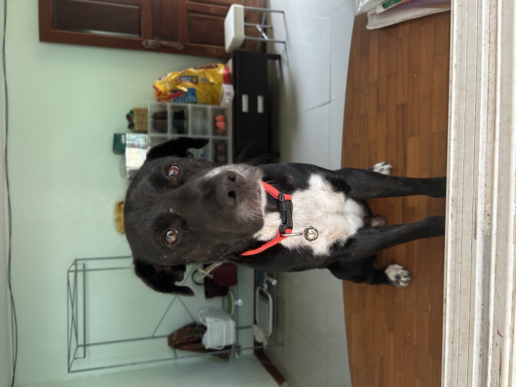 รอยตำหนิ: ตัวสีดำ เท้าสีขาว ปลายหางสีขาว