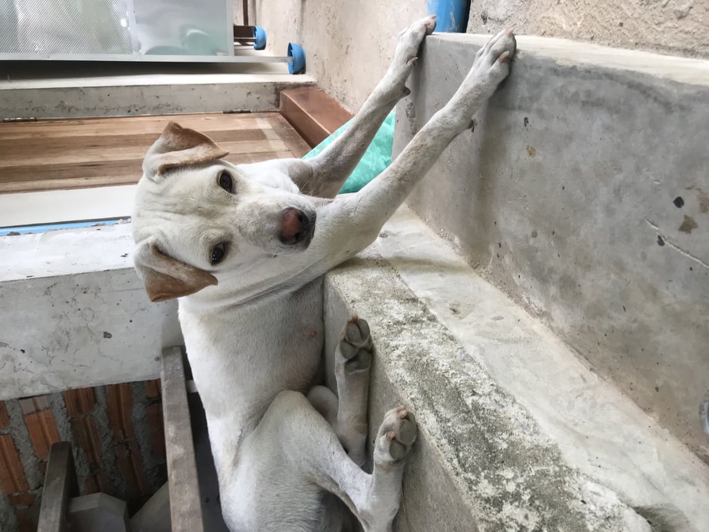 รอยตำหนิ: หน้าเอ๋อๆ ตาเหล่ๆ ขายาวกลัวคนมาก ไม่มีปลอกคอ