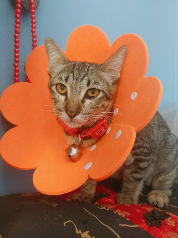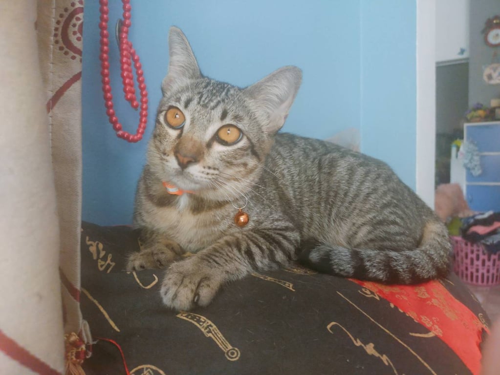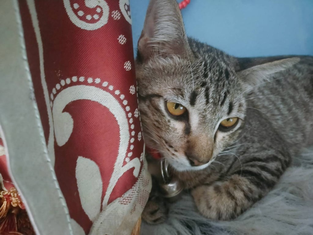 รอยตำหนิ: น้ำหนักประมาณ5กกปลอกคอกระดิ่ง สีแดงซีดๆ