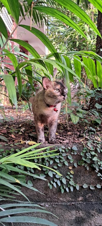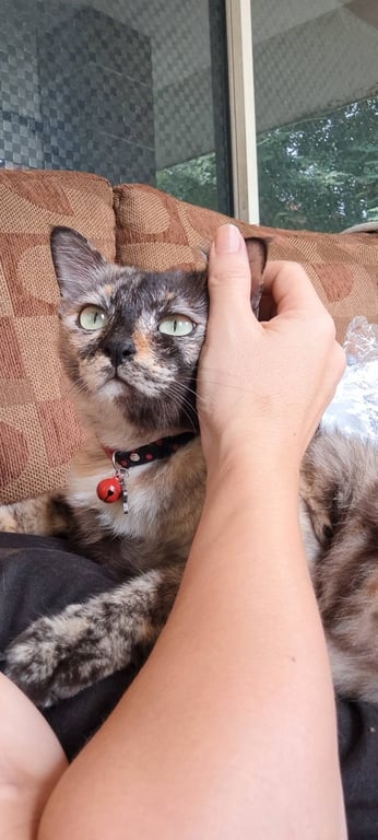 รอยตำหนิ: คางแยกสองสีน้ำตาลและครีมชัดเจน พุงกลมๆ น้ำหนักประมาณ 4.5กกตอนหายใส่ปลอกคอสีดำจุดแดง กระดิ่งสีแดง ขี้ตกใจ ขี้อ้อน ตัวนิ่มมากๆ