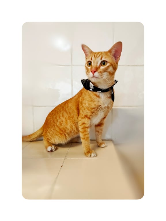 รอยตำหนิ: ขี้กลัว เสียงแหบนิดๆ หางยาวปลายคดนิดนึงน้องขี้กลัว แม้แต่เจ้าของบางทีก็วิ่งหนี ร้องเสียงแหบหน่อยๆ ชอบกินขนมปลากรอบ เวลากินขนมมักจะเกาะมือคนให้