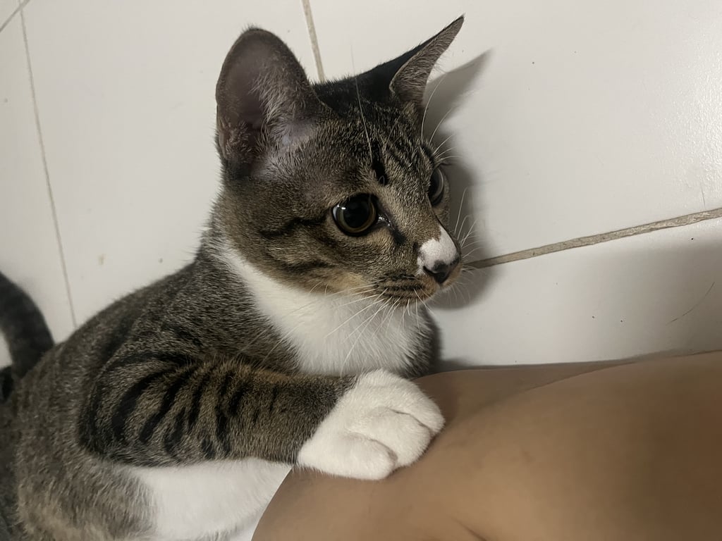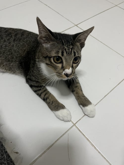 สี: ลายสลิด จมูกแต้มสีขาว ท้องขาว ใส่ถุงเท้าขาวสี่ข้าง