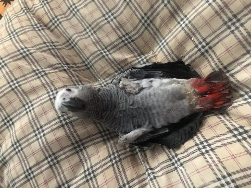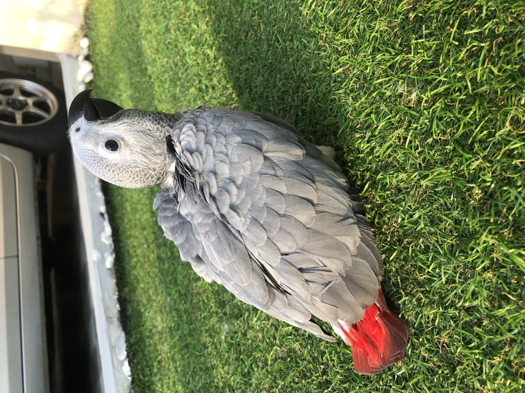 สี: ตัวสีเทาหางสีแดง