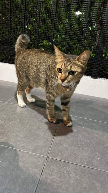 รอยตำหนิ: ขาหลัง 2 ข้างใส่ถุงเท้าขาว เท้าซ้ายเจ็บเล็กน้อยเป็นแมวจรเก็บมาเลี้ยง