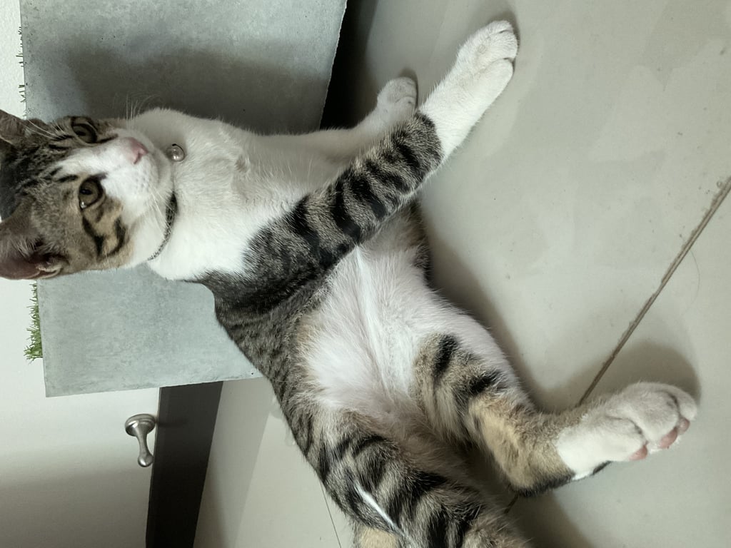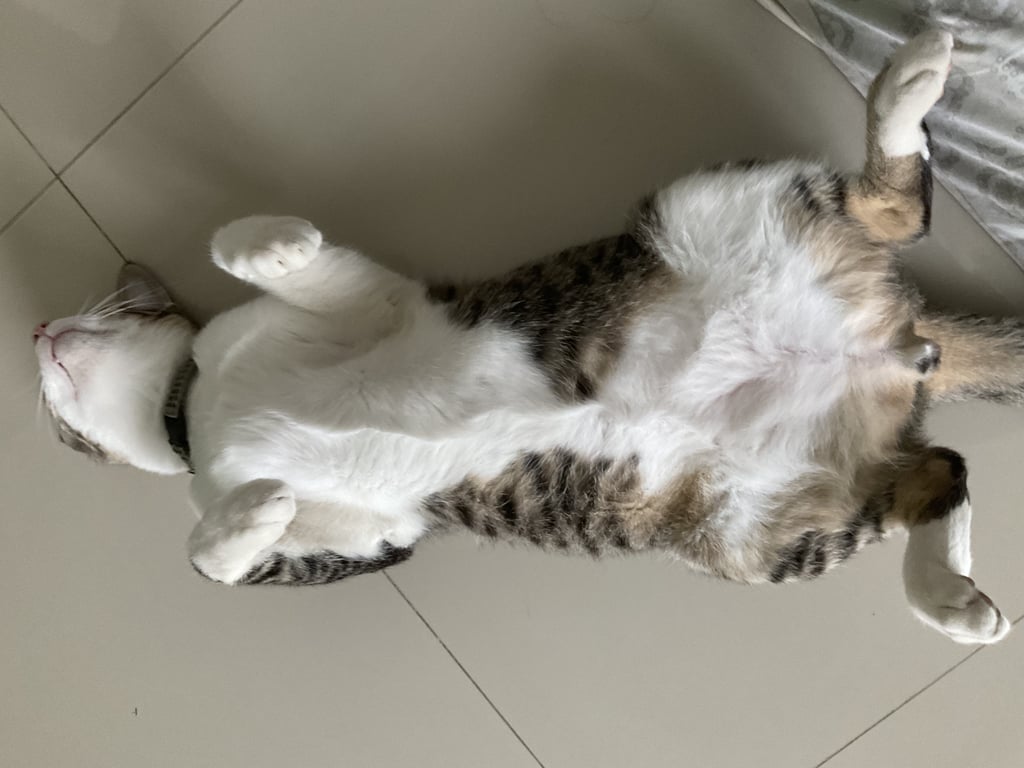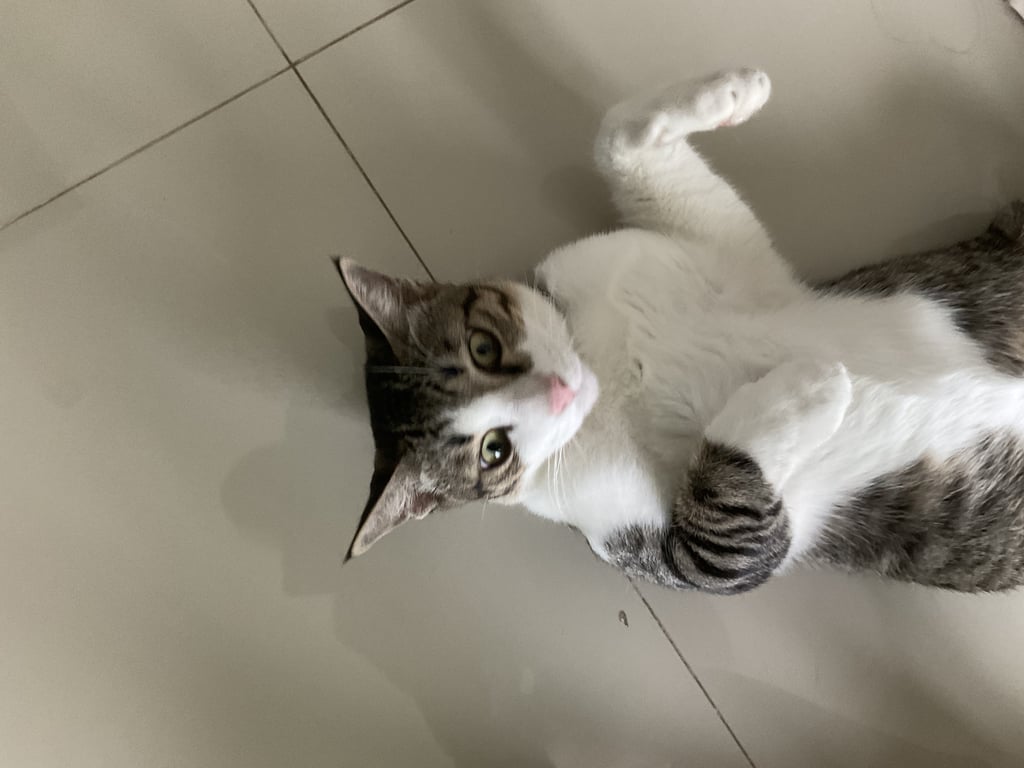 รอยตำหนิ: หางงอ มีจุดขาวบริเวณขา ตัวอ้วนนิดๆ ขาข้างนึงขาวหมด