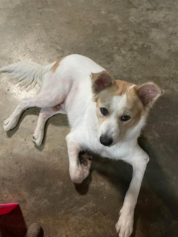 รอยตำหนิ: บางแก้วผสมหมาบ้าน ตัวเล็ก น้ำหนักประมาณ 18 กก.