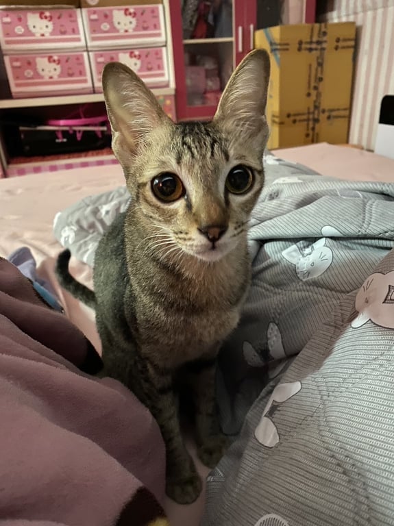 รอยตำหนิ: หางตรง ตัวเล็กตัวเล็กกว่าแมวรุ่นเดียวกัน
