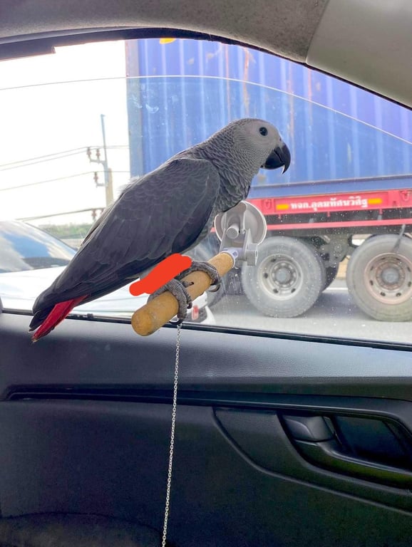สี: ตัวสีเทาหางสีแดง