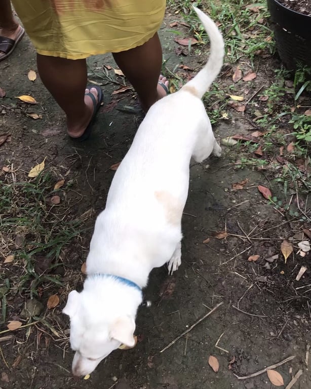 รอยตำหนิ: ลายสีน้ำตาลกลางลำตัวด้านซ้าย และรูปสามเหลี่ยมบริเวณโคนหางน้องค่อนข้างกลัวคนแปลกหน้า แต่ไม่ดุ