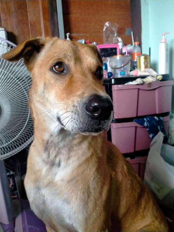 รอยตำหนิ: มีตุ่มกลมๆที่สะโพกข้างขวา ไม่ได้ใส่ปลอกคอ ตัวใหญ่ น้ำหนัก30 กิโลน้องกลัวพลุค่ะ น้องออกไปเดินเล่นหน้าบ้านช่วงเวลา19:00น. ข้างบ้านจุดพลุน้องเลยเตลิดหนีไป ตั้งแต่วันที่31แล้วค่ะ 🥹