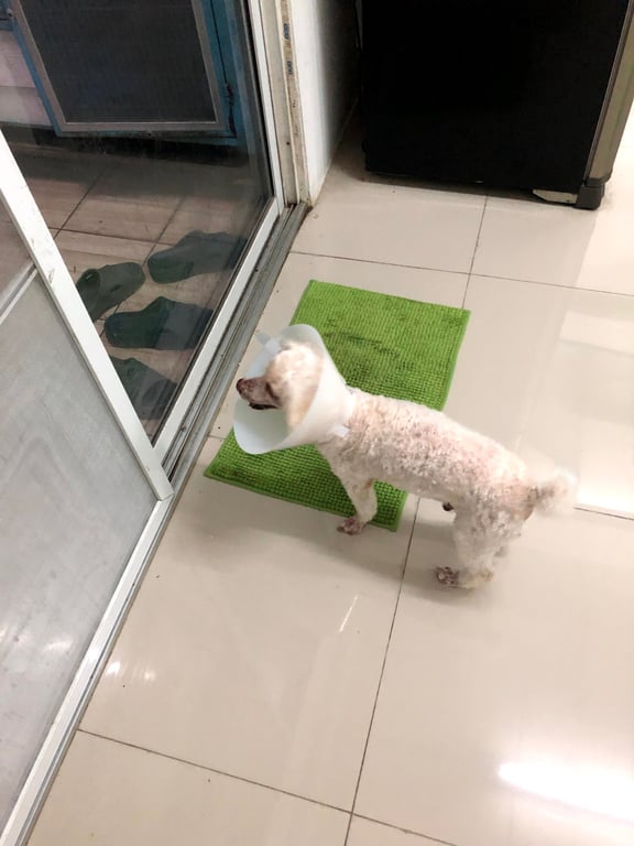 รอยตำหนิ: ตัดหางแล้ว ตาขวาเป็นฝ้า ก่อนหายไปเจาะเลือดมา ขาหน้าโกนขน