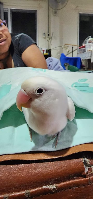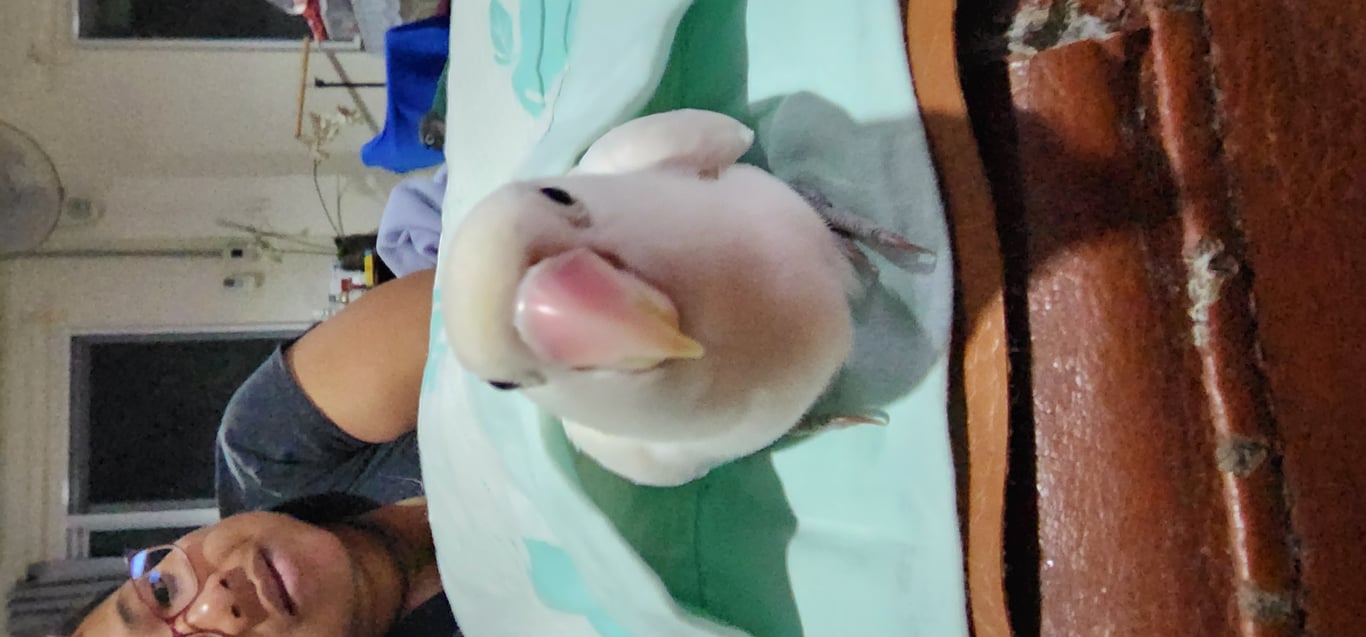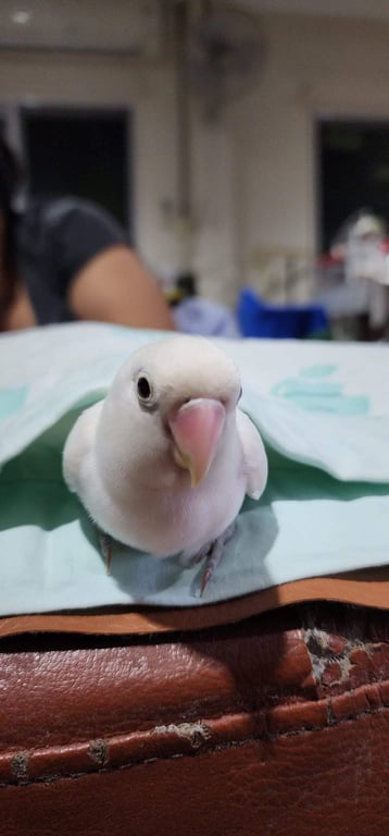 รอยตำหนิ: สีขาวเวลาโดนแสงจะมีสีเหลือบเขียวฟ้าน้องไม่กลัวคน แต่ไม่ให้จับง่ายๆ