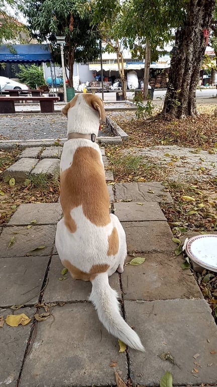 รอยตำหนิ: สวมปลอกคอสีครีม หูตูบ จมูกแดง