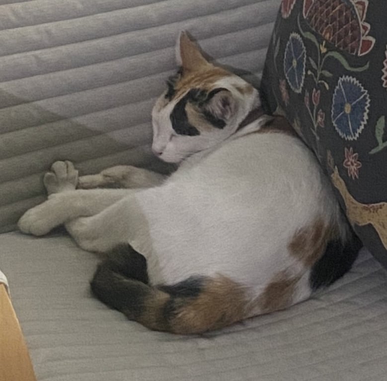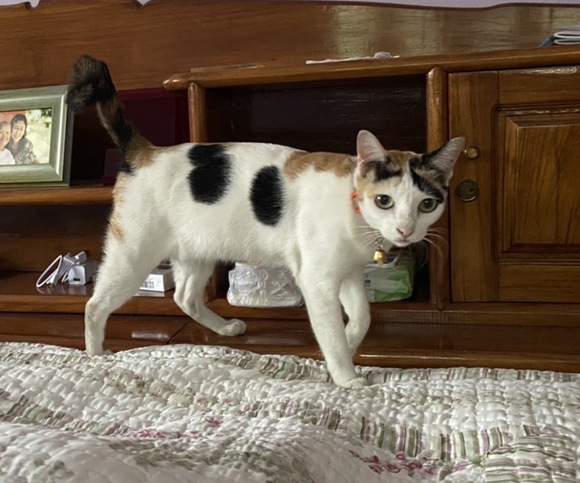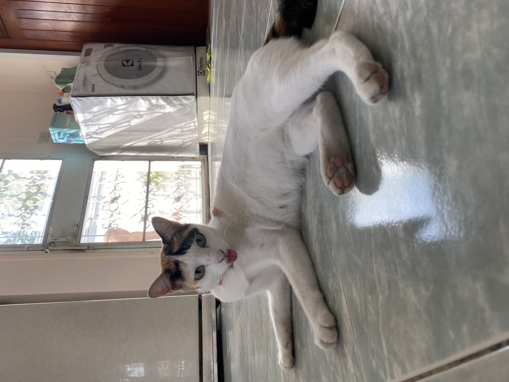 รอยตำหนิ: หางสั้น ปลายหางม้วน ตัวเล็ก หนักประมาณ3กก.ร้องเสียงเบา ไม่ชอบเสียงดัง ขี้ตกใจ