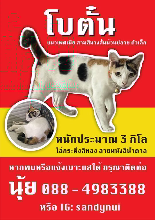 สี: สามสี ขาว แต้มดำและน้ำตาล