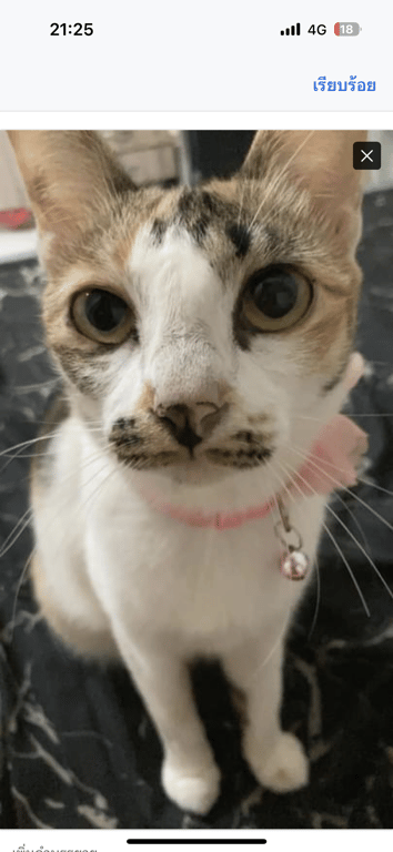รอยตำหนิ: ปลายหางงอเล็กน้อยต้าลี่เป็นแมวเรียบร้อยรู้ชื่อเวลาเรียกมักจะขานรับมีจุดดำๆที่บริเวณปากคล้ายไฝหลายจุดน้องไม่ได้ใส่ปลอกคอ