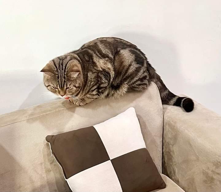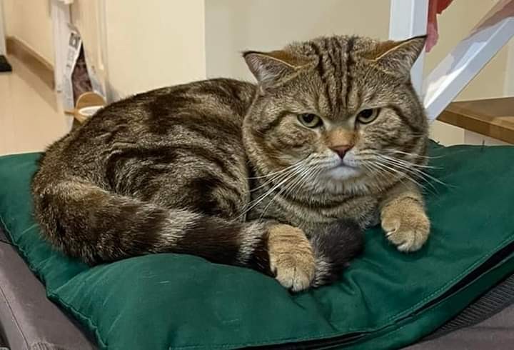 รอยตำหนิ: ตัวอ้วนใหญ่ หูตั้ง หน้ากลม ปลอกคอสีเหลือง กระดิ่งสีส้มนิสัยกลัวคน ชอบแอบ มีปัญหาระบบลำไส้ต้องกินอาหารเฉพาะ