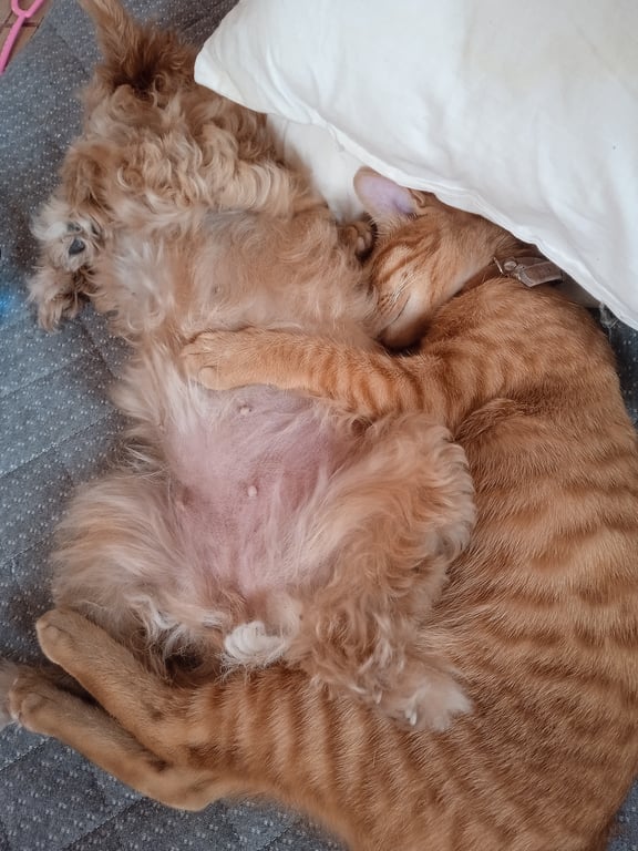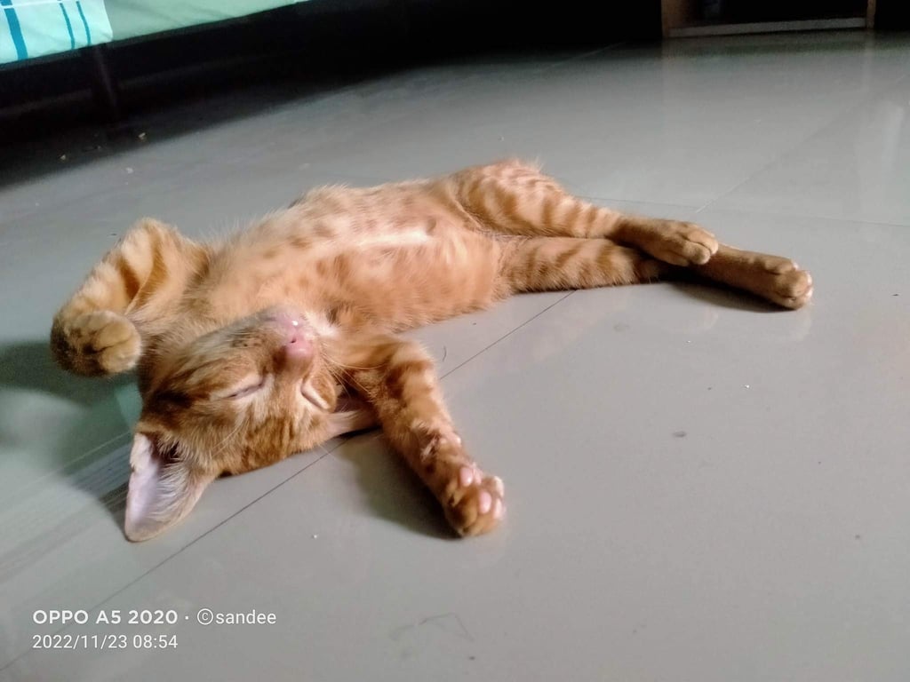 รอยตำหนิ: หางกวัก สั้นกุดใส่ปลอกคอสีชมพู