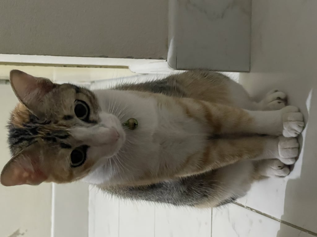 รอยตำหนิ: หางจะสั้นงอๆคดๆมีปลอกคอโซ่กระดิ่งอยู่ที่คอ ตัวเล็กๆ หน้าจะแหลมๆหน่อย ตรงตาจะเหมือนกรีดอายไลเนอร์อยู่ เวลาเจอคนเจอรถจะชอบวิ่งหนี ถ้าเจอน้องรบกวนรีบติดต่อมาเลยนะคะ