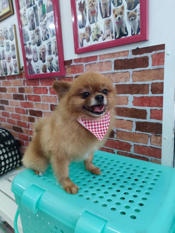 รอยตำหนิ: ขนสีน้ำตาล ตรงปากสีขาว น้ำหนัก 3.15 กก.