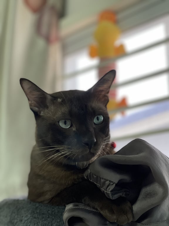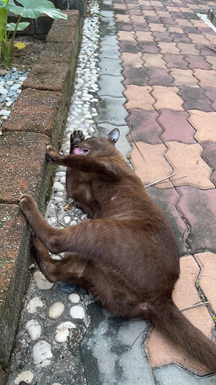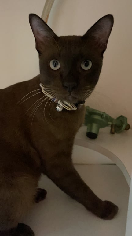 รอยตำหนิ: หางมน สีน้ำตาลล้วน ไม่มีปลอกคอ น้ำหนัก ประมาณ 4.5 โล ลำตัวผอมเพรียวชอบกิน Regalos กะปลาไข่