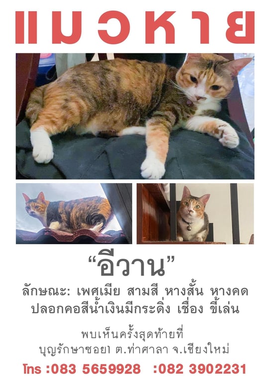 รอยตำหนิ: หางสั้น หางคด เชื่อง ขี้เล่น3ปี