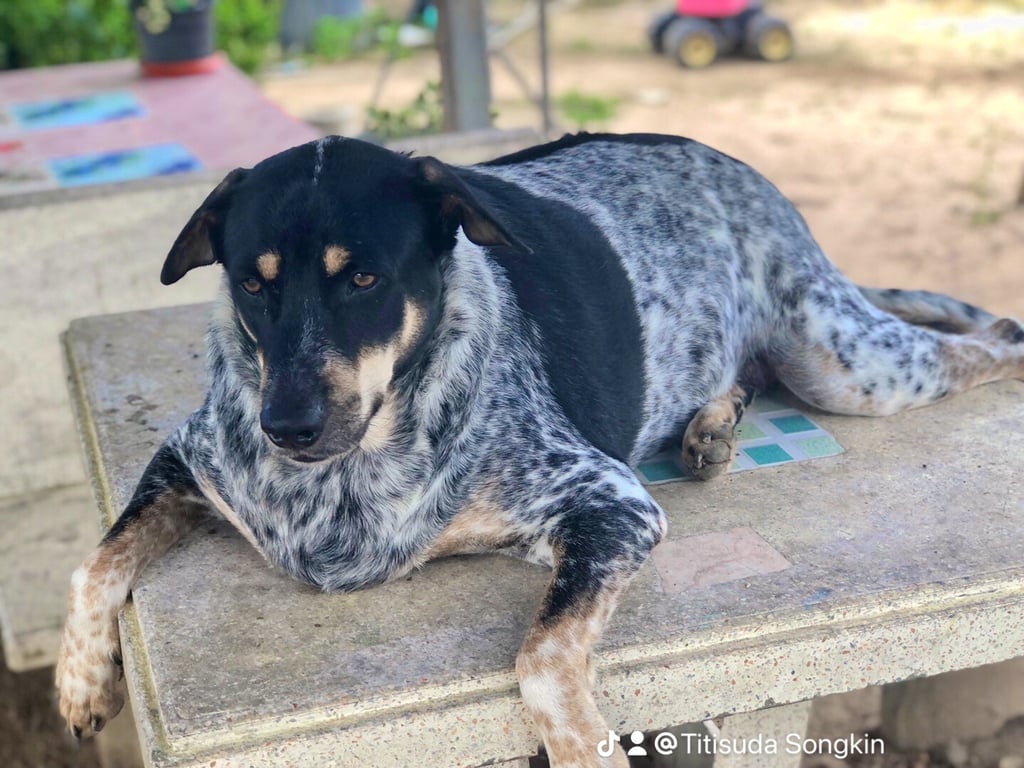 สี: สีขาวดำ ลายด่าง มี4ตา แก้มสีน้ำตาล