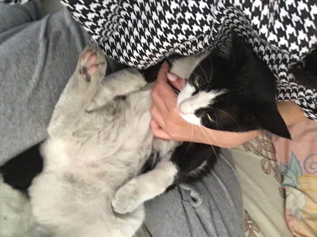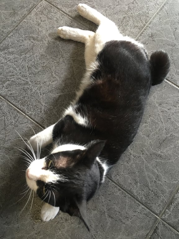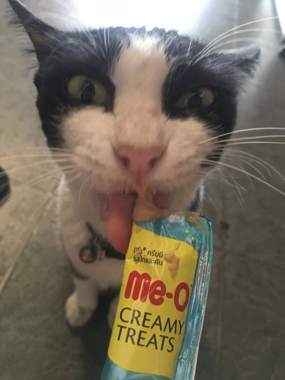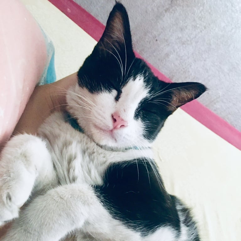 รอยตำหนิ: หางกุดสีดำ เดินเหมือนกระต่ายปลอกคอสีฟ้าตอนหายไป ตาสีเขียว เดินเหมือนกระต่าย ขี้กลัวคน และหมา จมูกและอุ้งเท้าชมพู ขนตรง