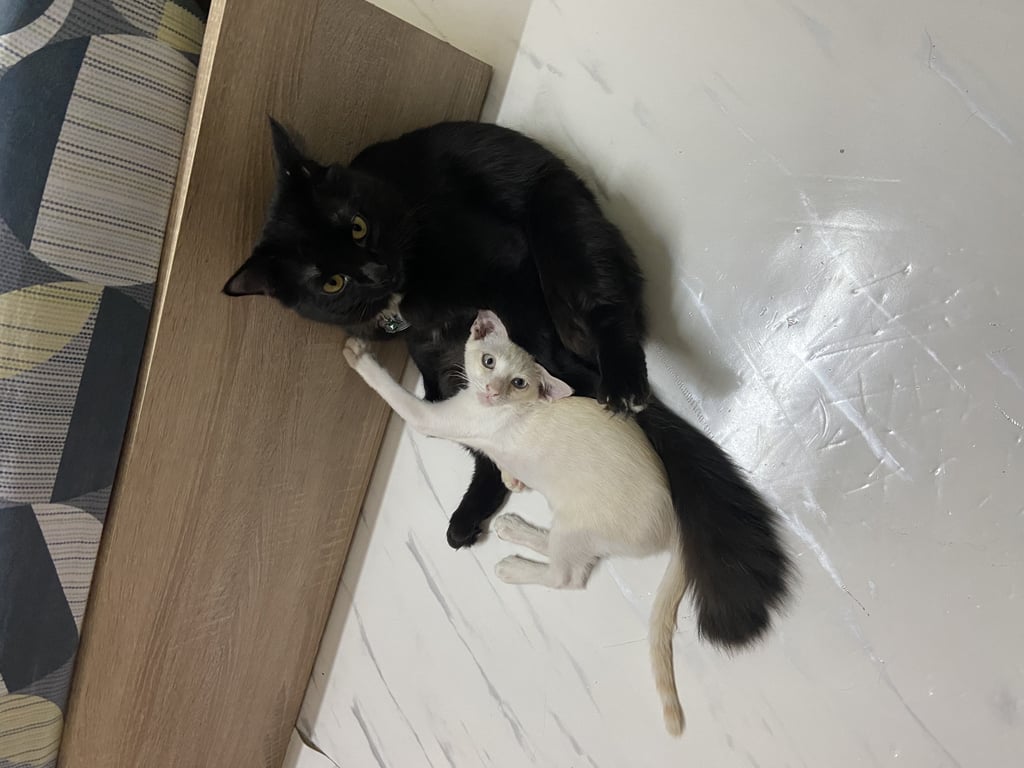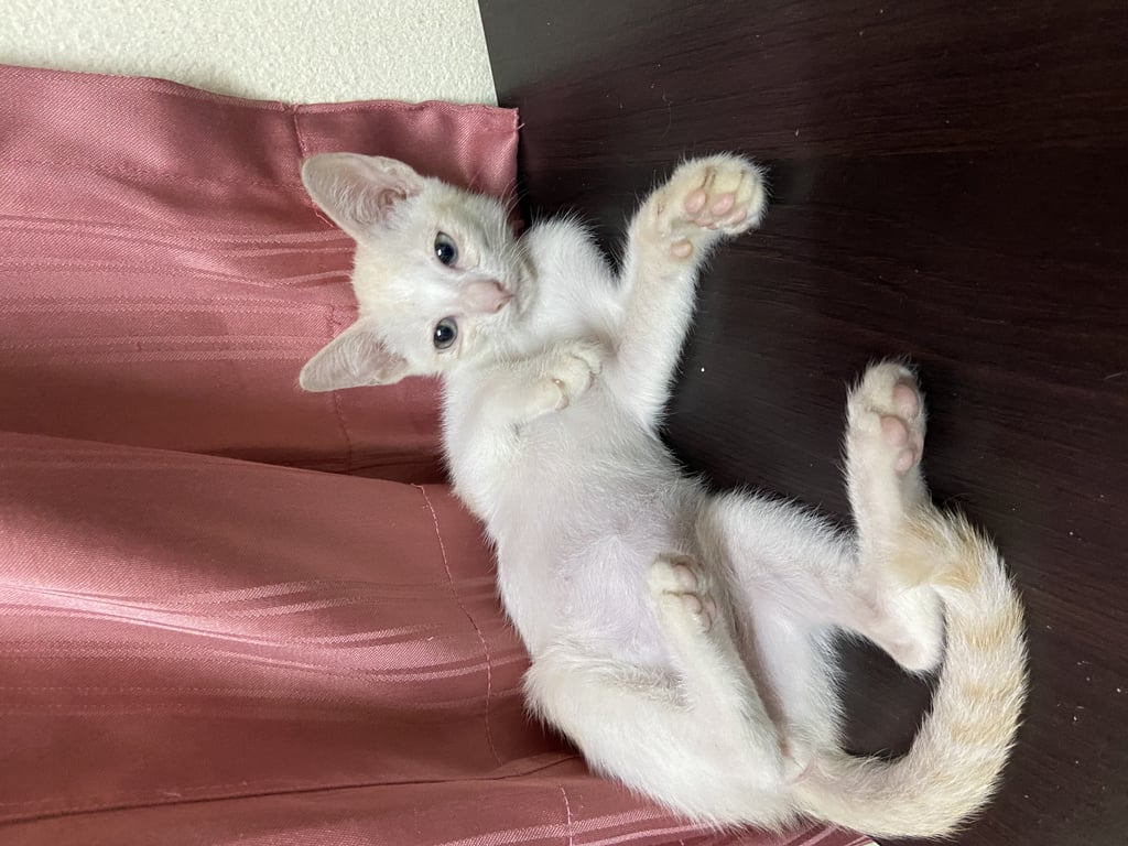 รอยตำหนิ: อายุ 2 เดือน สีออกขาวเหลืองแมวเด็ก อายุประมาณ 2 เดือน