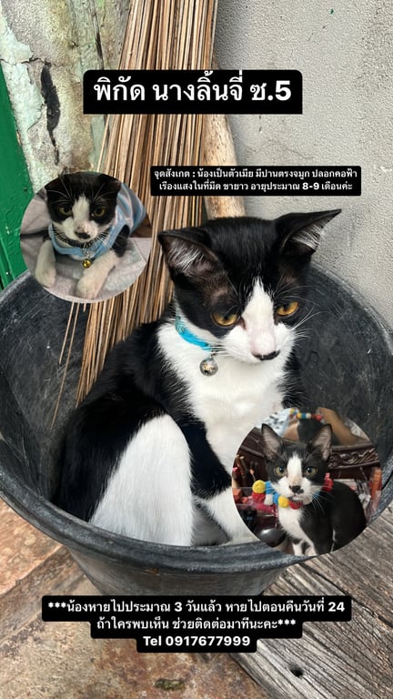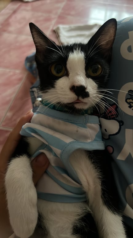รอยตำหนิ: มีปานที่จมูก ขายาว ปลอกคอฟ้า8-9 เดือน