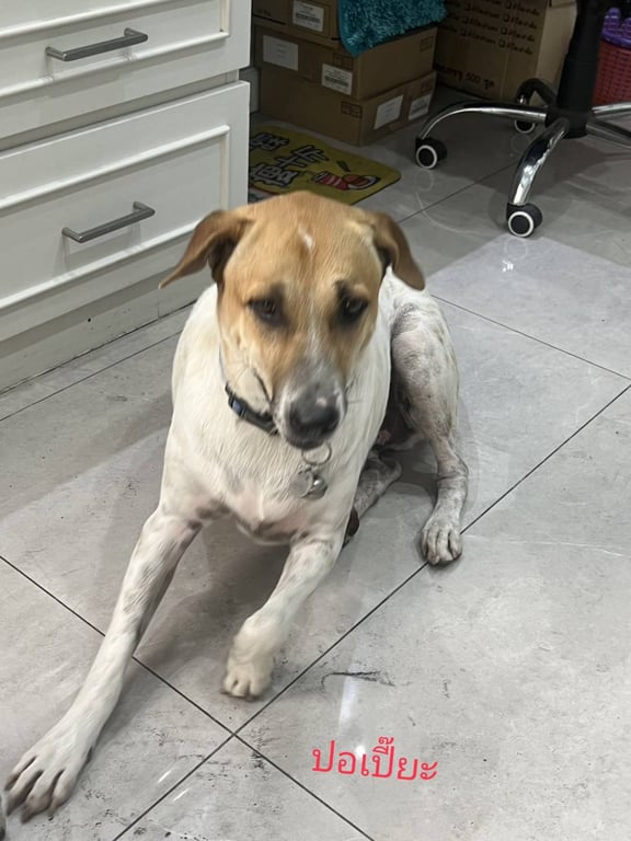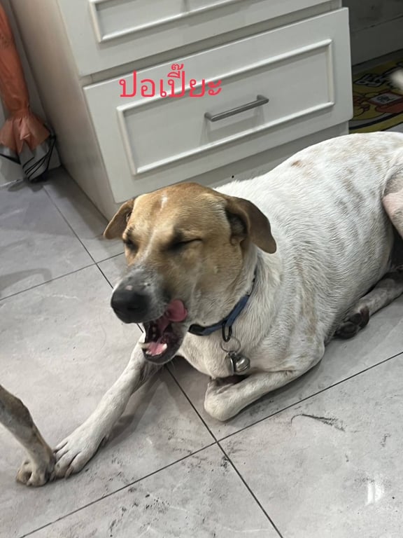 รอยตำหนิ: ตรงจมูกมีรอยด่างน้องเป็นหมาจรที่เอามเลี้ยง