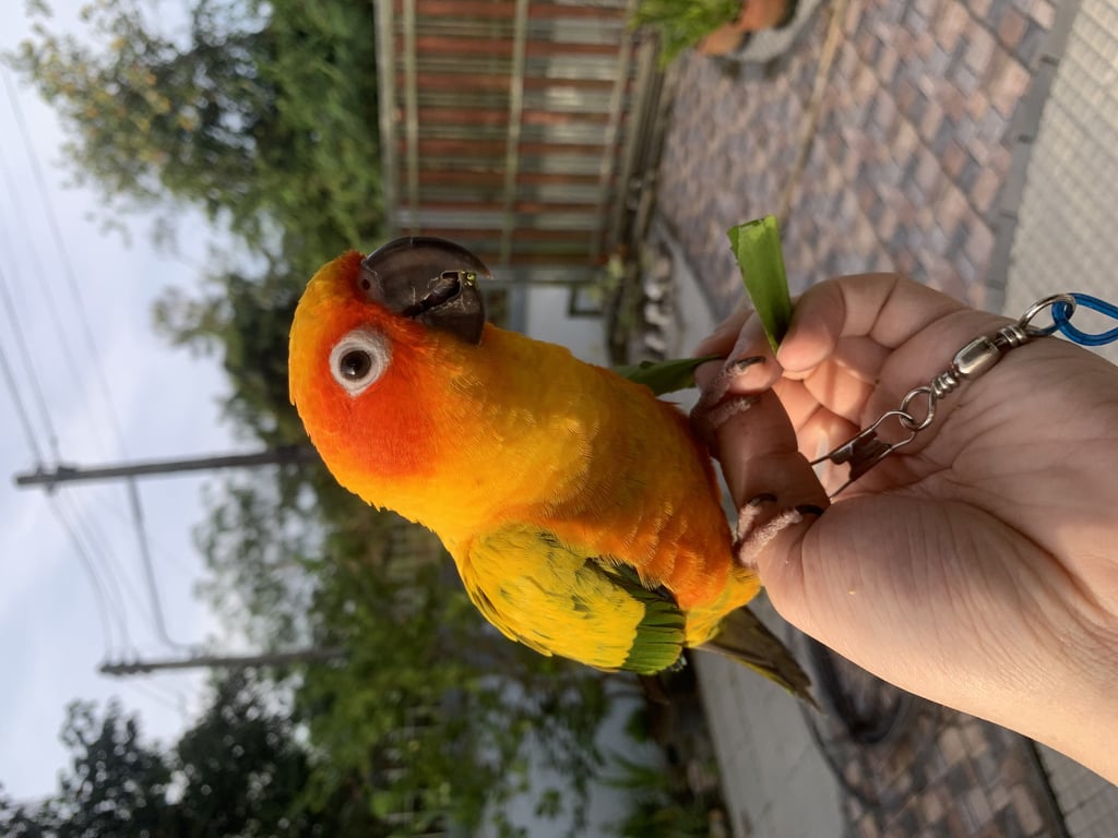 รอยตำหนิ: มีห่วงขาพร้อมชื่อและเบอร์โทรนกแก้วซันคอนัวร์ ร้องเสียงดัง