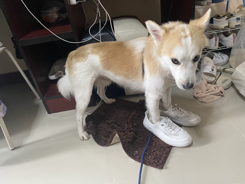 รอยตำหนิ: มีรูปหัวใจที่หัว มีหนวดสีดำ 1 เส้น ปลายหางหัก(ต้องจับดูถึงจะรู้เพราะขนหางยาว)ขี้ร้อน จับยาก ชอบเล่นกับผู้ชายมากกว่าผู้หญิง ชอบเห่าคนหรือรถที่ขนของรุงรัง