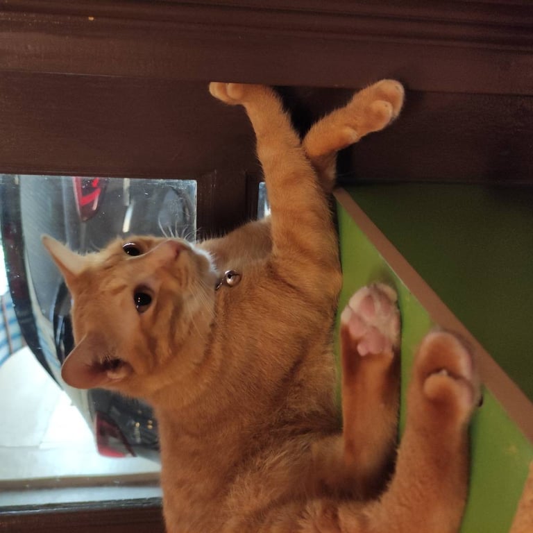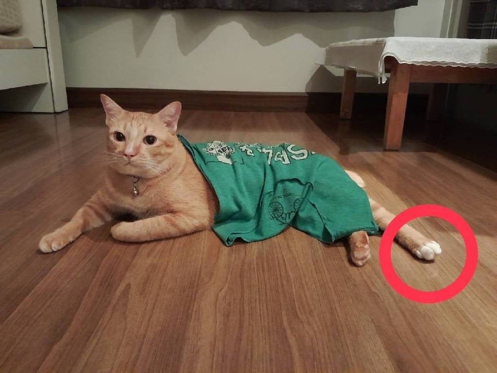 รอยตำหนิ: หางหักเหมือนเป็นปม//เท้าหลังซ้ายมีถุงเท้าขาวเสียงร้อง "แม๊ะ แอ๊ว" หรือ "แม๊ะ แอ๊ะ แอ๊ว" ใส่ปลอกคอสีดำ มีกระดิ่งสีดำ