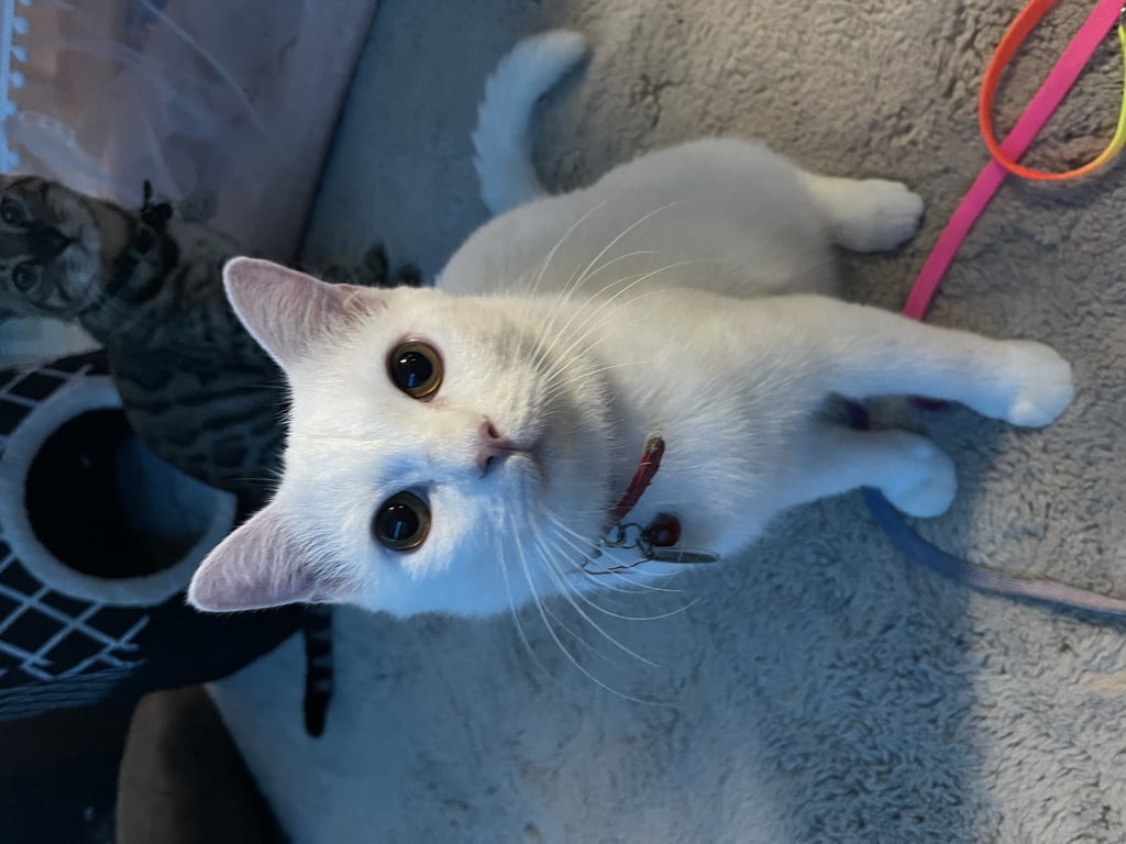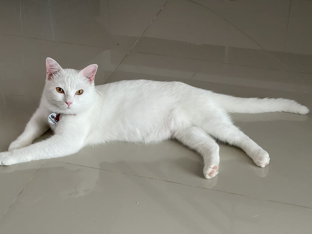 รอยตำหนิ: มีสิวแมวที่คาง ชอบทำหน้าเดฟ อ้วน หนัก4.8กก. ชอบหนีเที่ยว ไม่มีปอกคอกน้องเป็นพัธ์ผสม สกต+เปอร์เซีย แต่หน้าเหมือนขาวมณี