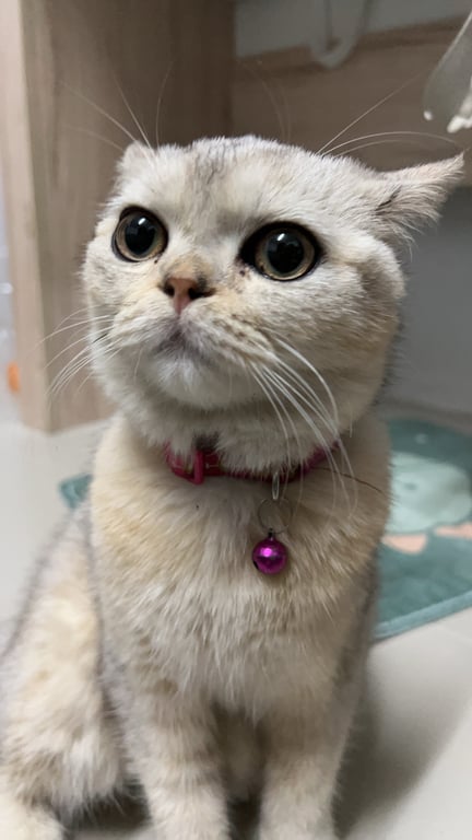 รอยตำหนิ: หน้าสามเหลี่ยมปลอกคอสีชมพู กระดิ่งสีฟ้า