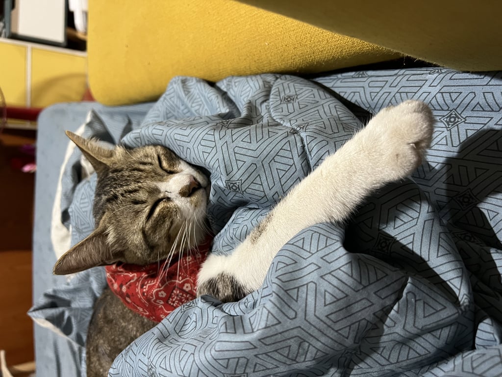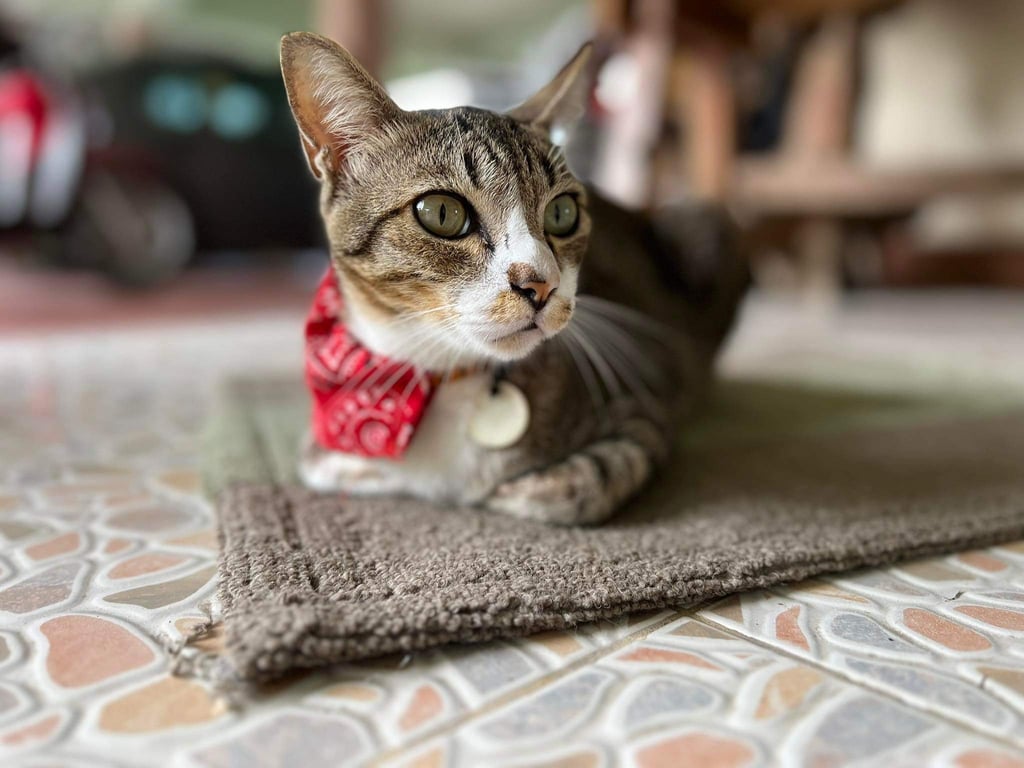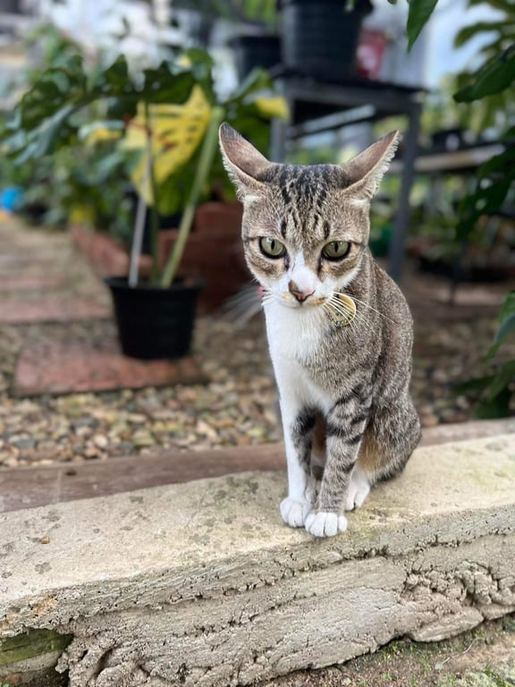 รอยตำหนิ: จมูกขาวและ มีแต้มสีน้ำตาล อกและขาข้างซ้ายขาวใส่ผ้าพันคอสีแดง เรียกแล้วรู้ชื่อตัวเอง ไม่ค่อยชอบให้จับ