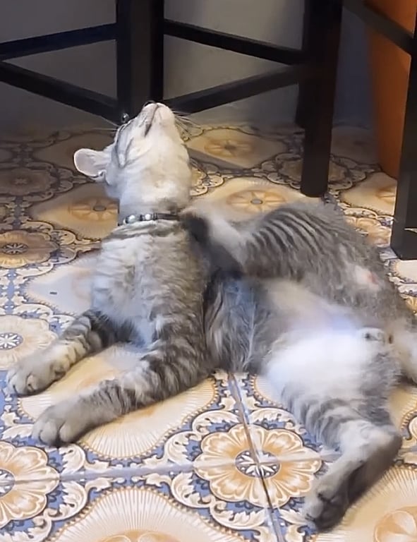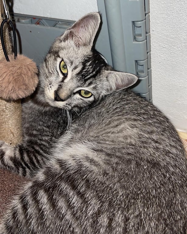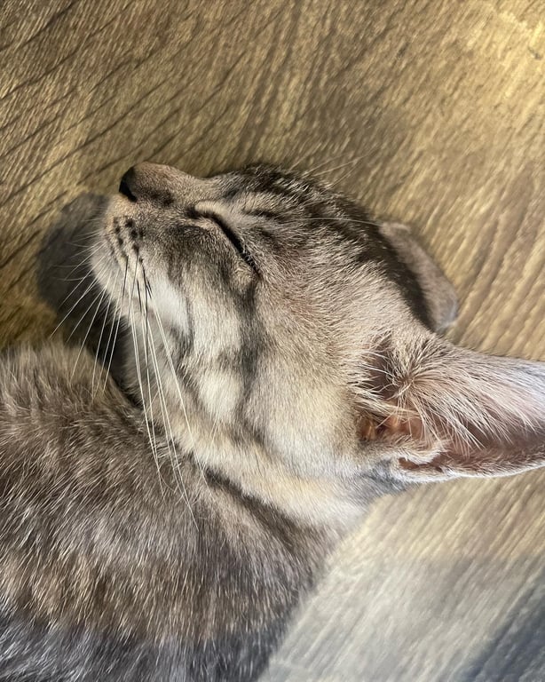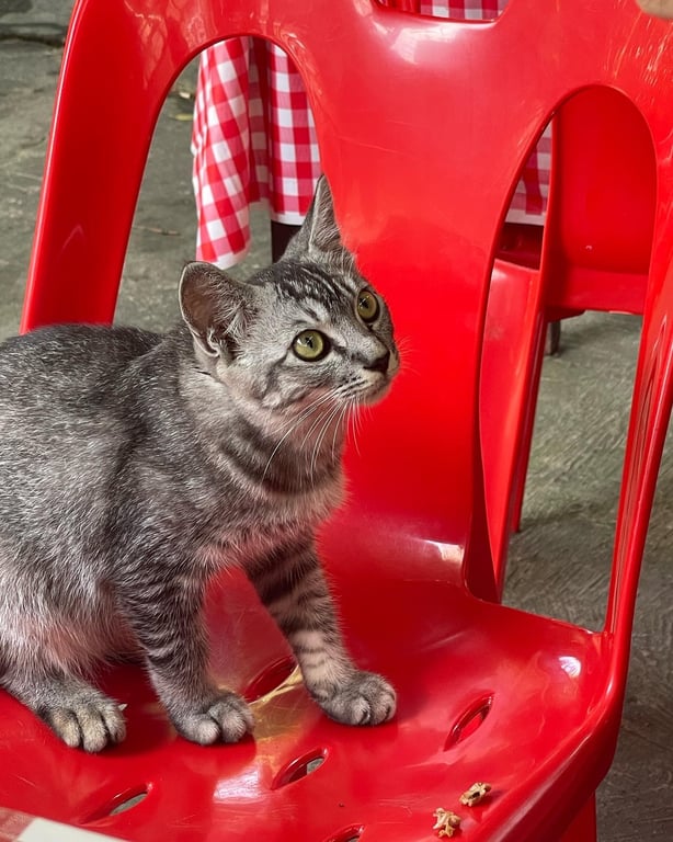 รอยตำหนิ: หางยาว ปลายหางงอที่คอมีปลอกคอสีเทาเล็กๆ ที่ตูดข้างซ้ายมีร้อยน้องโดนแมวเจ้าถิ่นกัด แต่ตอนนี้หายแล้วขนเริ่มงอกขึ้นมา คุยเก่ง อ้อนเก่ง