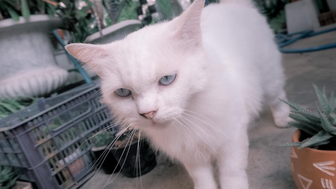 รอยตำหนิ: ตัวขาวล้วนตาสีฟ้า ปอกคอสีฟ้า ลายผ้าพันคอ