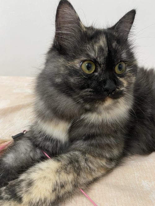 รอยตำหนิ: ขาหน้าข้างซ้ายเป็นสีขาว ตัวอ้วนขนฟูขี้กลัว