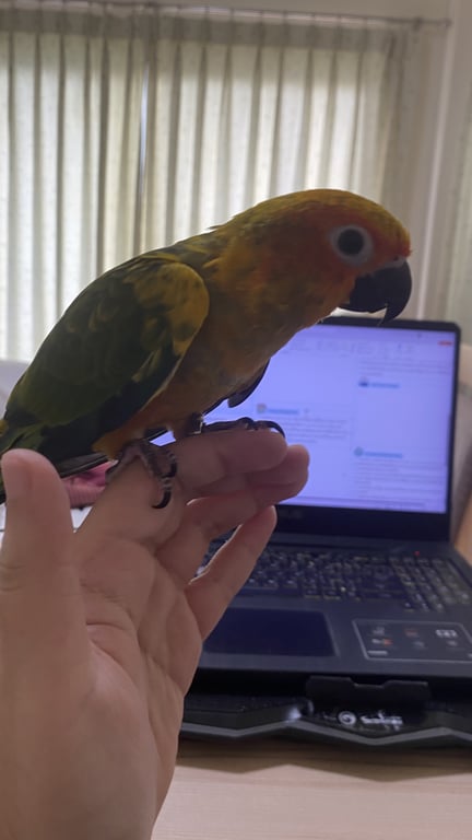 สี: หัวส้มเหลือง ปีกยังมีสีเขียวมากกว่าสีเหลืองเพราะยั